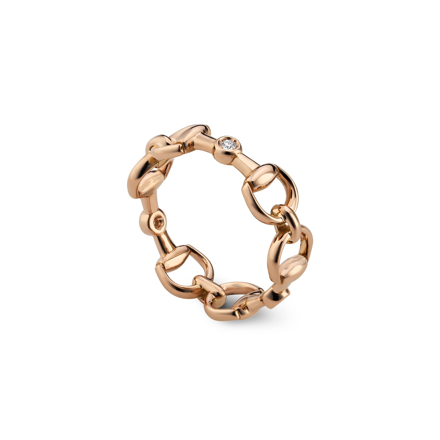 Μια επέκταση της σειράς Horsebit περιλαμβάνει εντυπωσιακά διαμάντια τα οποία φιγουράρουν σε κοσμήματα από ροζ χρυσό. Αυτό το δαχτυλίδι απεικονίζει το μοτίβο το οποίο είναι εμπνευσμένο από τον κόσμο της ιππασίας, ως μια αλληλένδετη παραλλαγή του γνωστού σχεδίου.