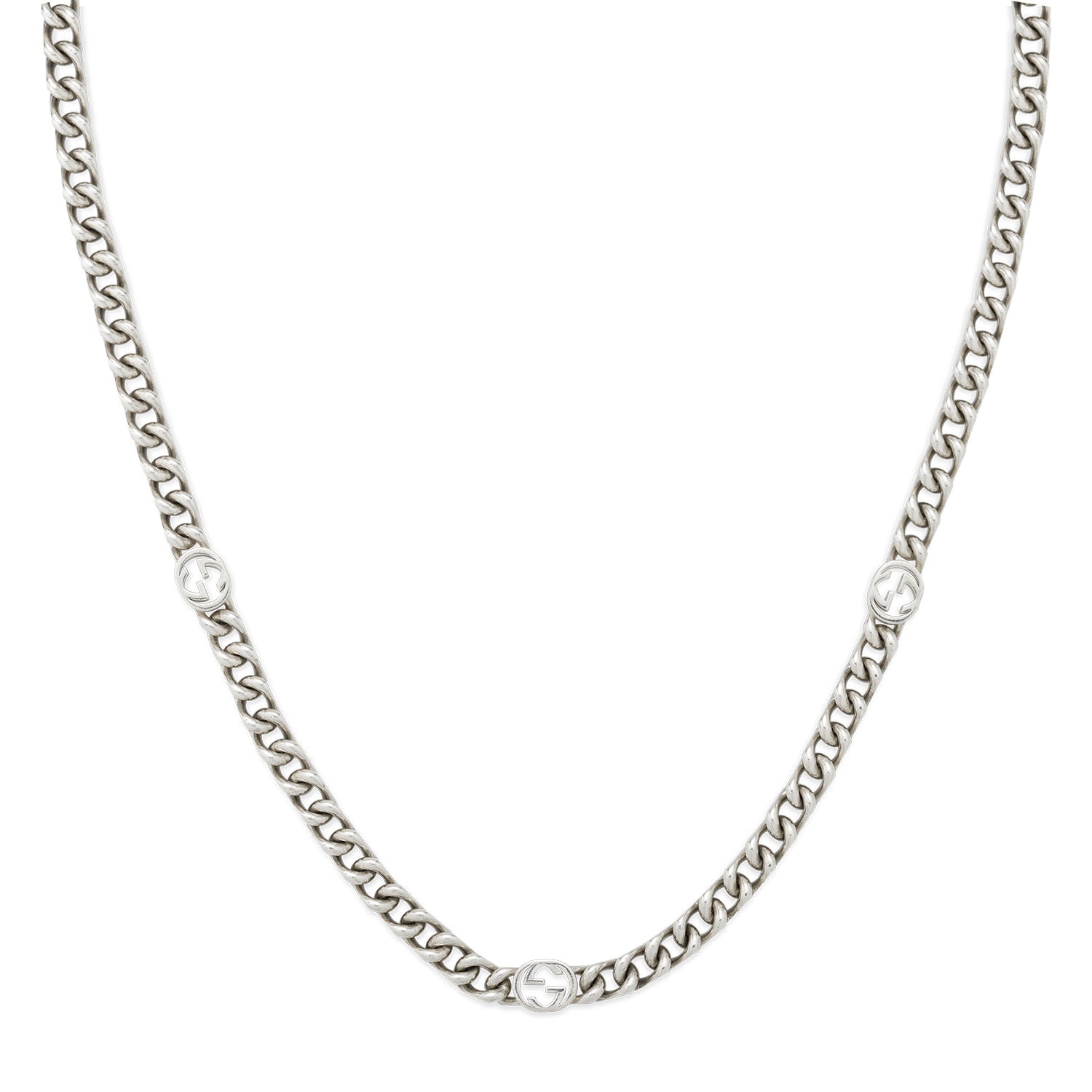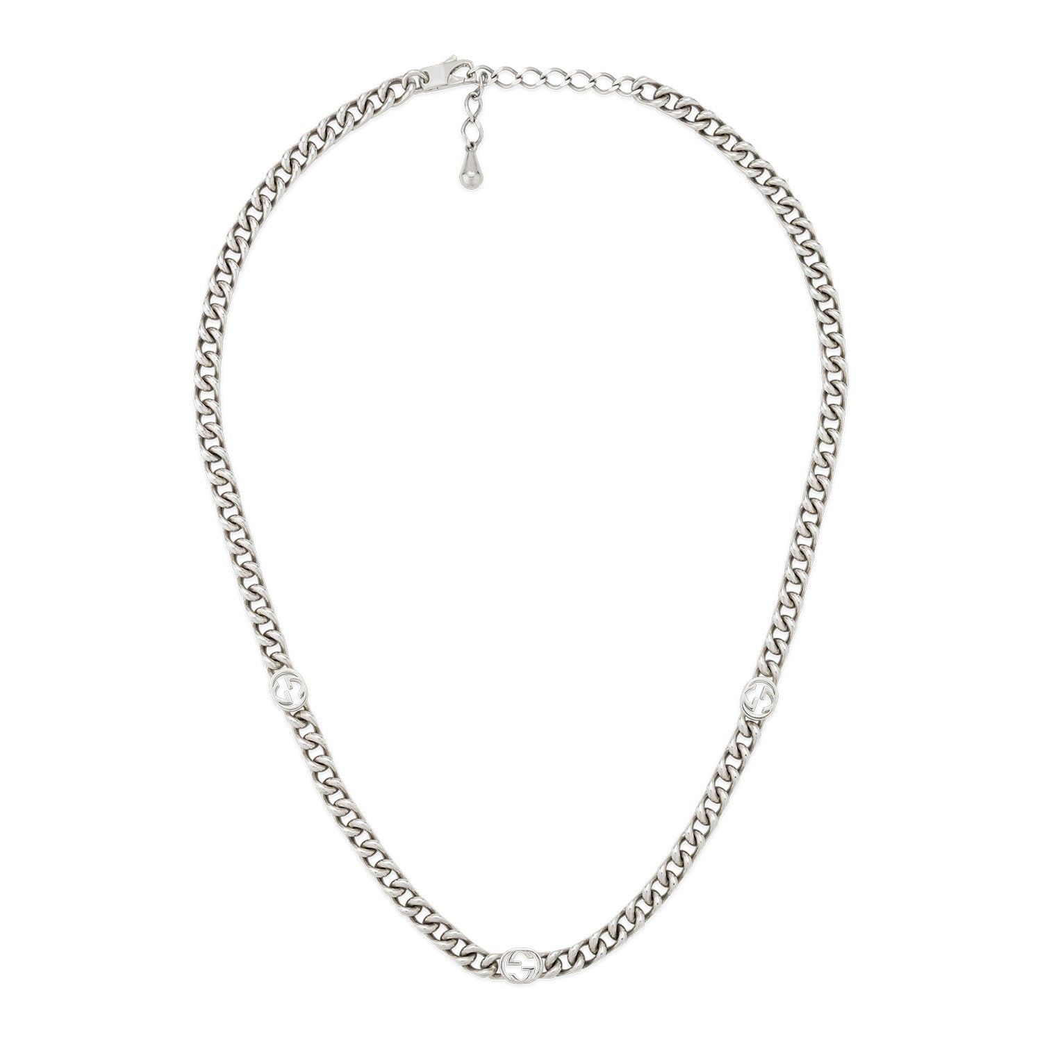 Στη συλλογή Φθινόπωρο-Χειμώνας 2025, τα νέα δαχτυλίδια με διπλές λωρίδες και τα ογκώδη σκουλαρίκια-κρίκοι δίνουν μια σύγχρονη άποψη στο σύμβολο Interlocking G. Τα αέρινα κολιέ και βραχιόλια με τις ντελικάτες αλυσίδες αναδεικνύουν το μοτίβο ως γούρι. Αυτό το συγκεκριμένο κολιέ χαρακτηρίζεται από το ειδικό κούμπωμα και το λογότυπο το οποίο έχει τη μορφή υπογραφής.